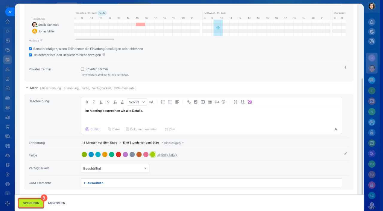 8. Klicken Sie auf Speichern, um den Termin zu erstellen.
