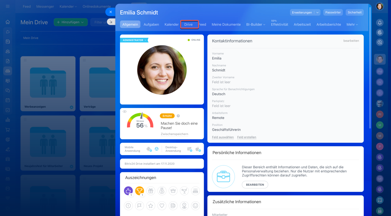 • Bitrix24 bietet verschiedene Zugriffsrechte für persönliche Drives.