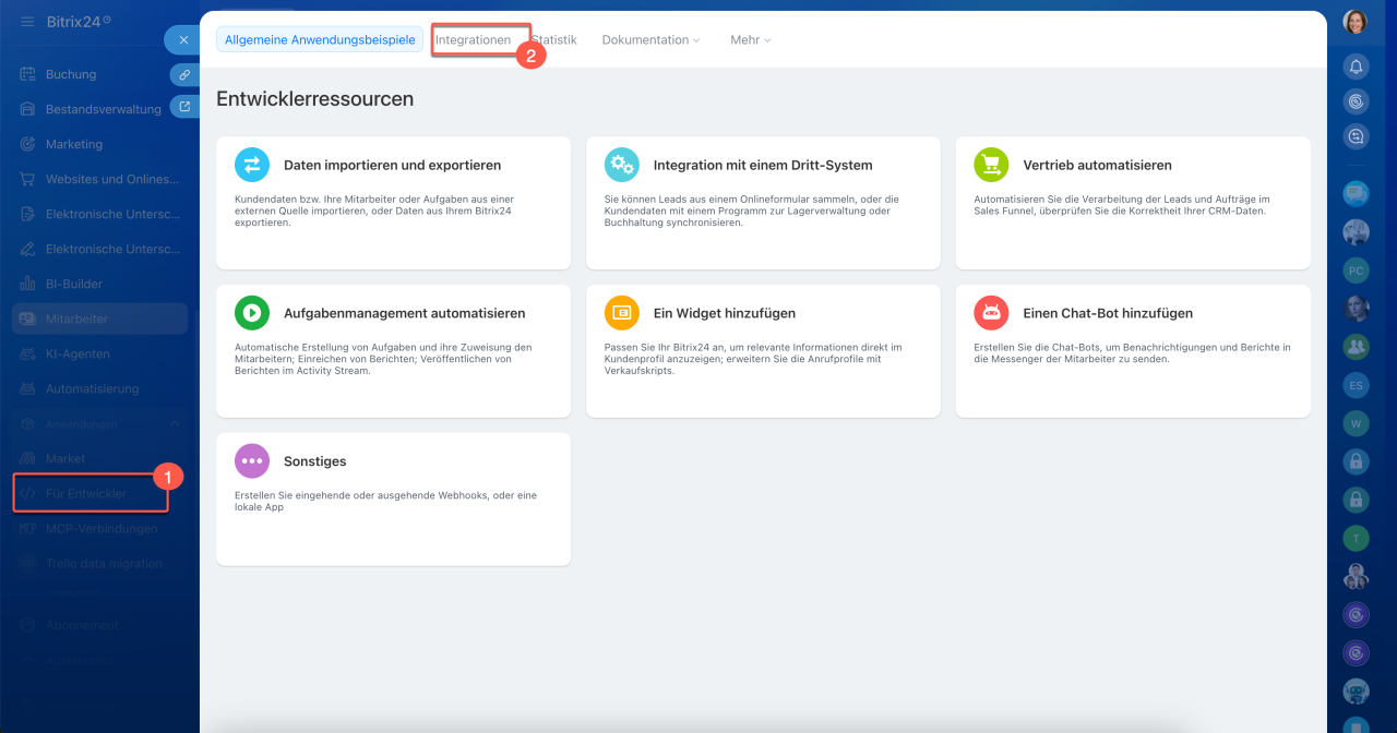 1–2. Klicken Sie neben Bitrix24 oder neben dem Namen Ihres Unternehmens auf das