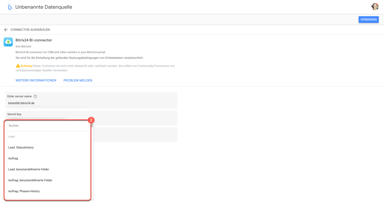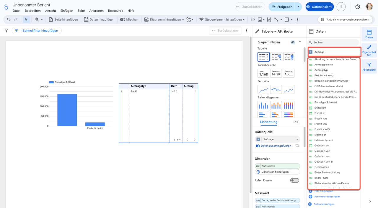 CRM-Elemente aus dem CRM nach Google Looker Studio übertragen