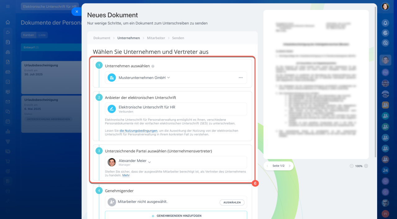 1. Öffnen Sie den Bereich Elektronische Unterschrift für HR.