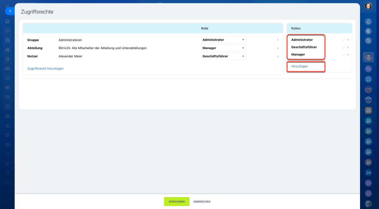 - Geschäftsführer: Verfügt über dieselbe Rechte wie der Administrator, kann jedoch keine Einstellungen ändern.