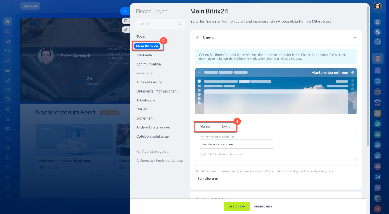Unternehmensnamen oder Bitrix24-Logo ändern