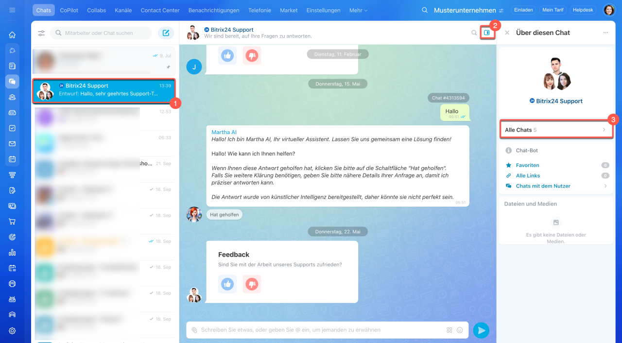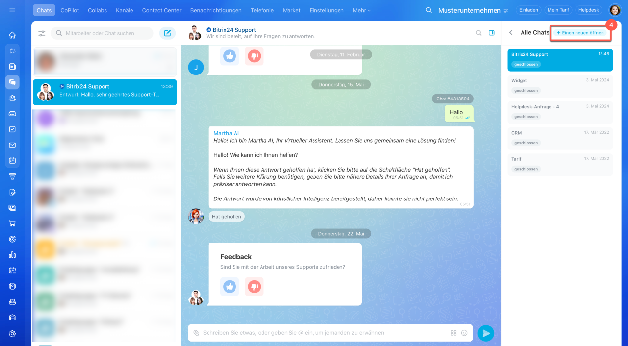 Mehrere Dialoge mit dem Bitrix24-Support erstellen