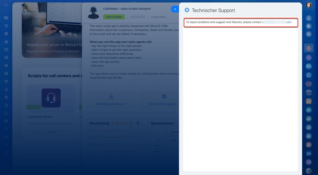 - an wen Sie sich wenden, wenn eine App aus dem Bitrix24 Market fehlerhaft funktioniert.