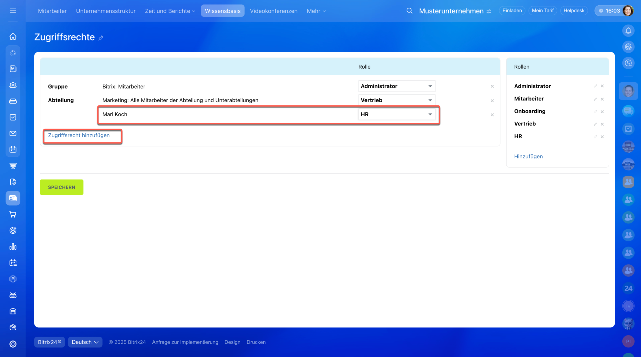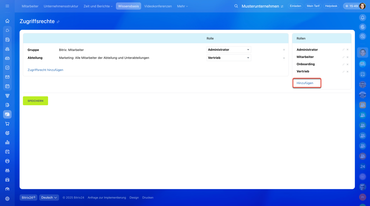 • Sie können benutzerdefinierte Rollen erstellen und sie Mitarbeitern oder Abteilungen zuweisen.