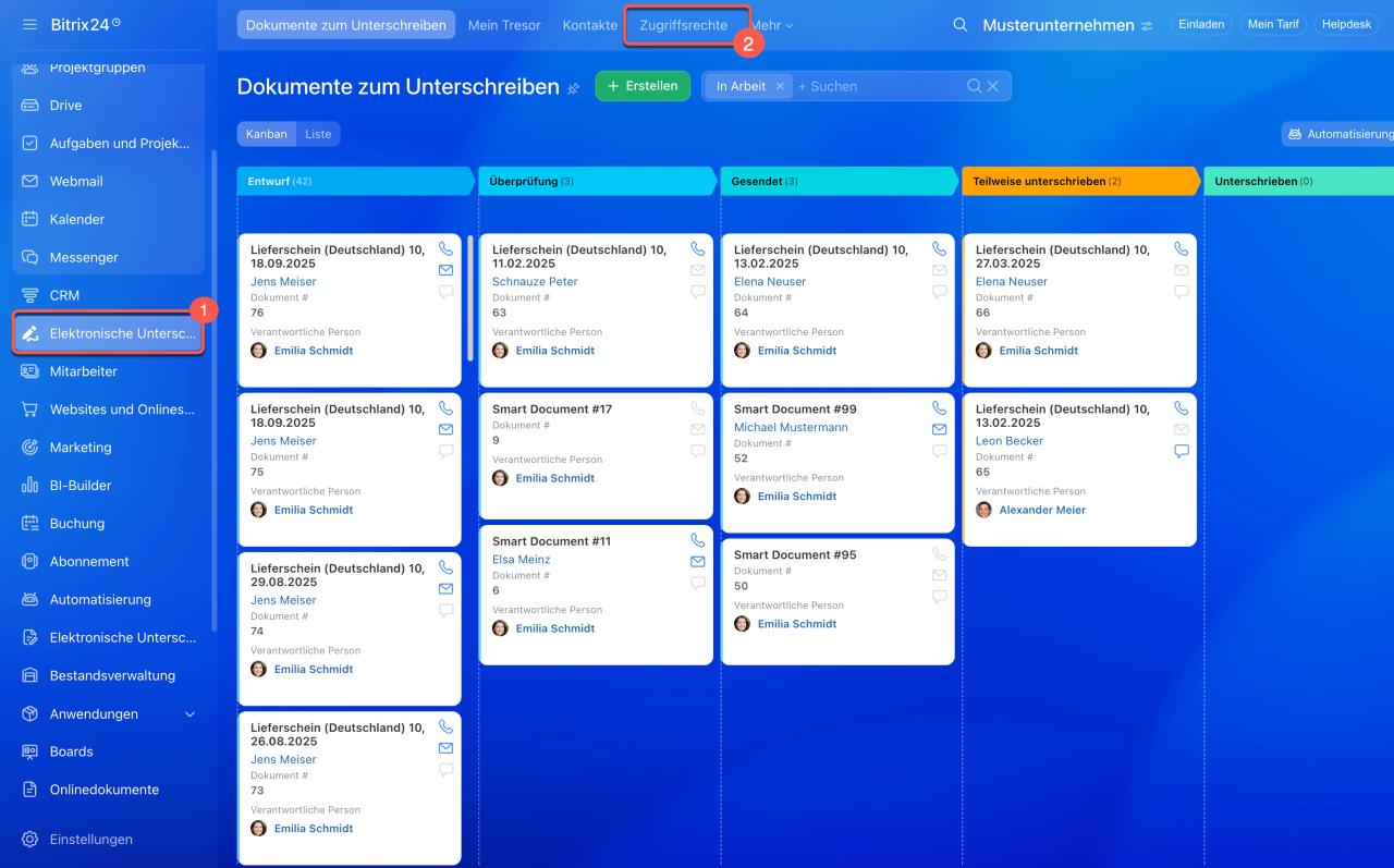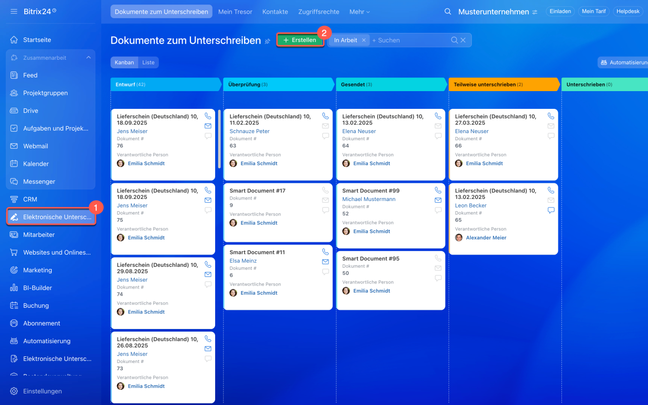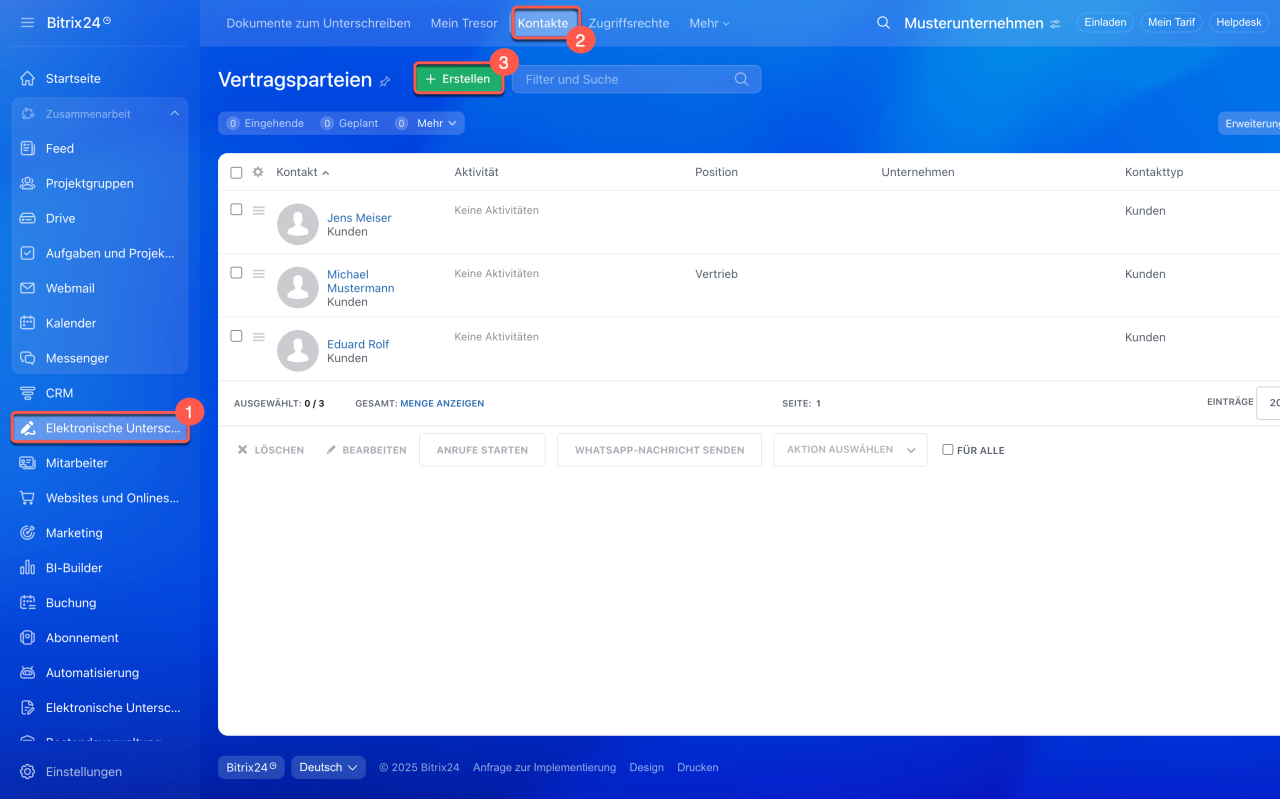 Kontakte in der elektronischen Unterschrift von Bitrix24 sind Partner, Kunden und Lieferanten, mit denen Dokumente digital unterzeichnet werden.