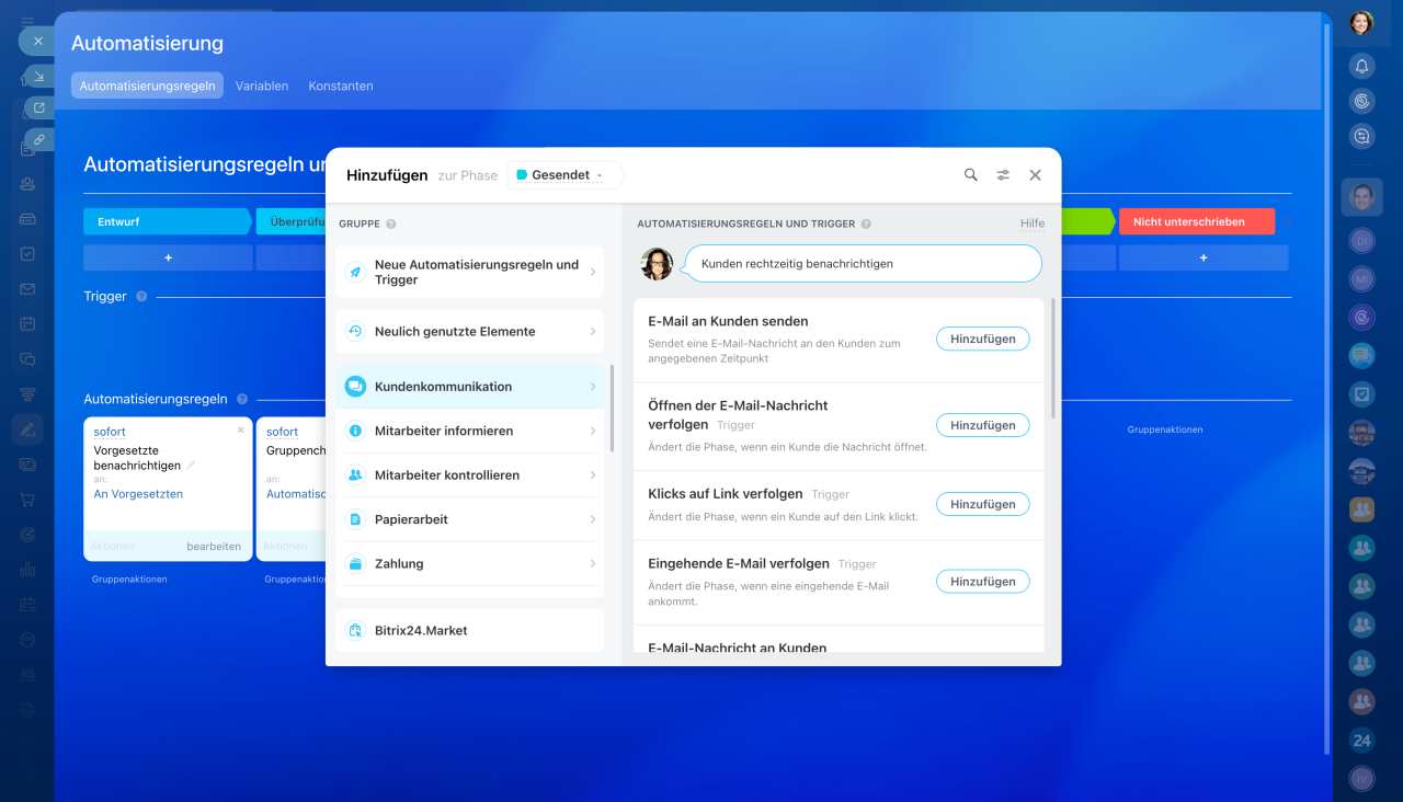 • Sie können Automatisierungsregeln und Trigger konfigurieren, um den Unterzeichnungsprozess mit Kunden zu automatisieren.