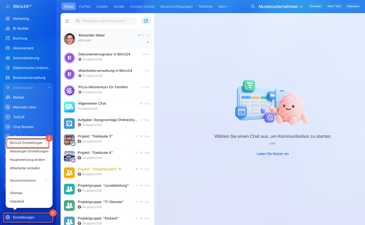 - Wählen Sie Bitrix24-Einstellungen aus.