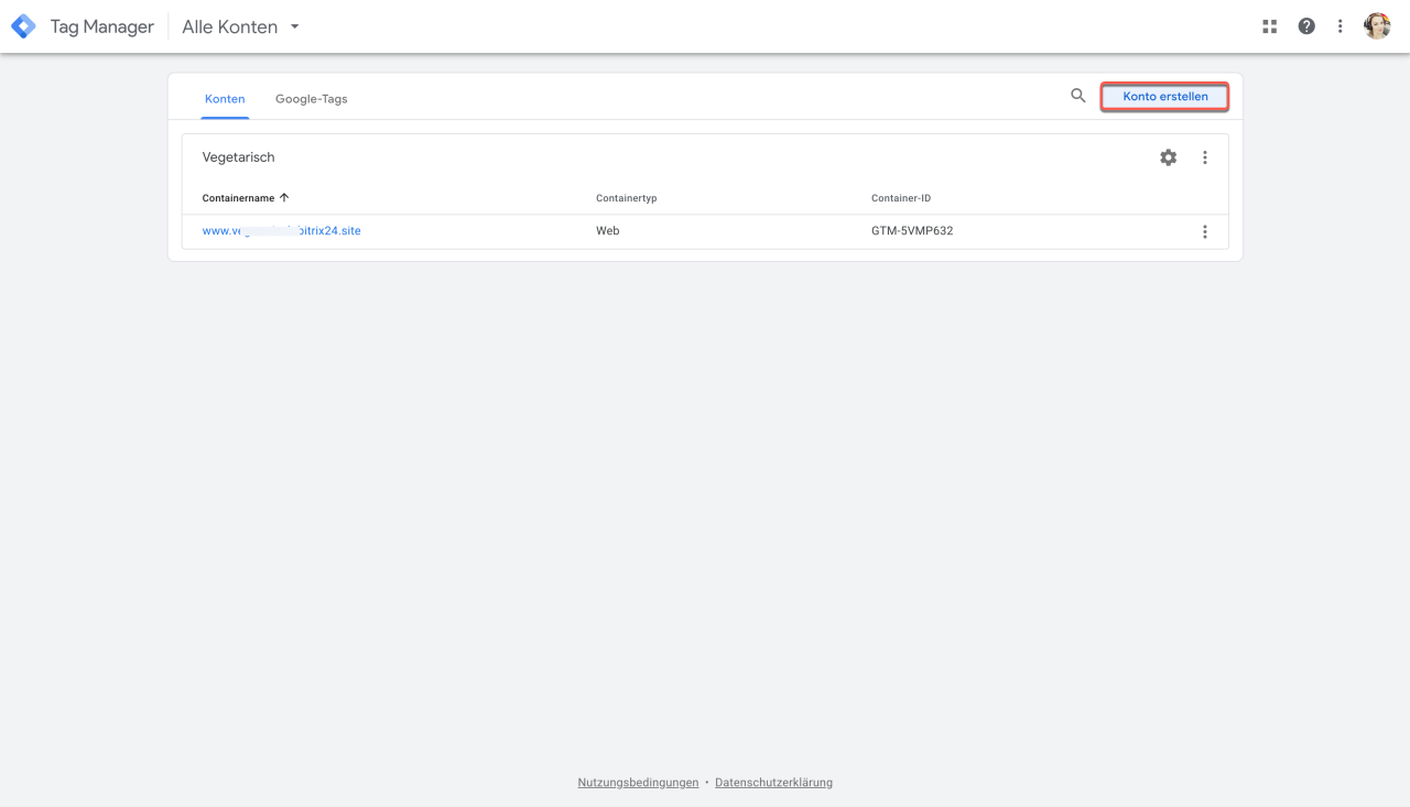 Google Tag Manager-Konto erstellen und Container-ID kopieren