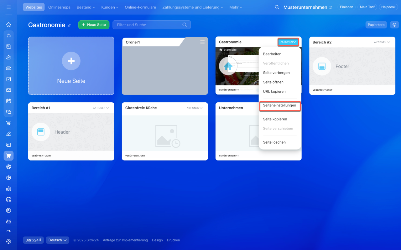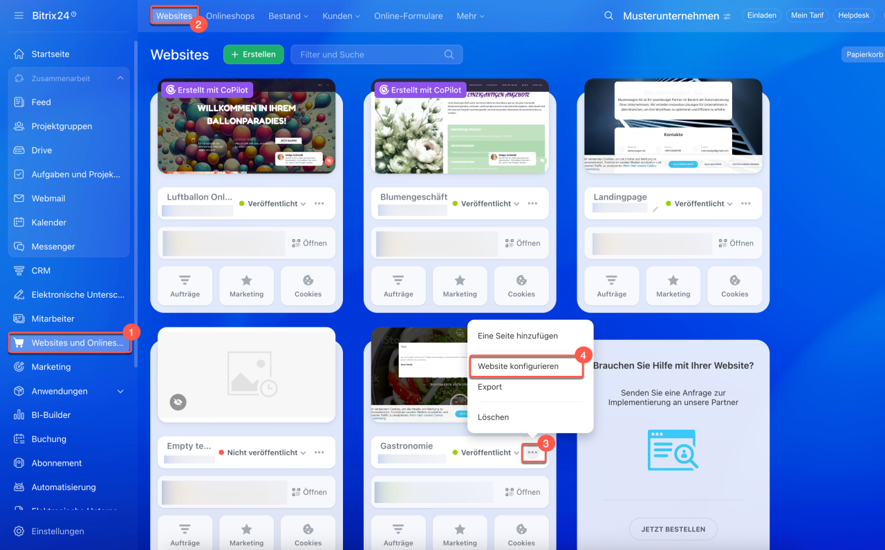 - Öffnen Sie die Einstellungen Ihrer Bitrix24-Website.