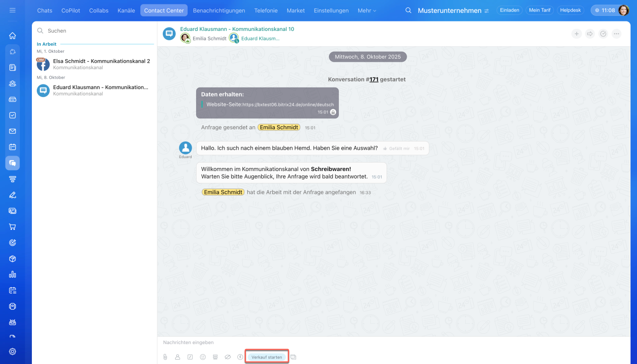 - Klicken Sie unten im Chat-Fenster auf Verkauf starten.