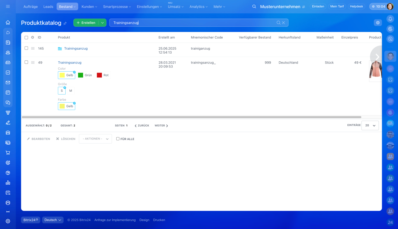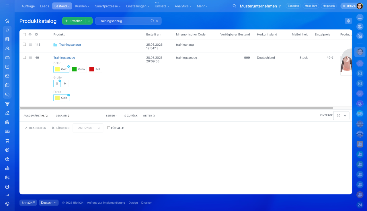 Bitrix24 hat einen einheitlichen Produktkatalog für CRM und Onlineshops. Wenn Sie einen Onlineshop anbinden, werden die Produkte aus dem Katalog automatisch auf der Website angezeigt.