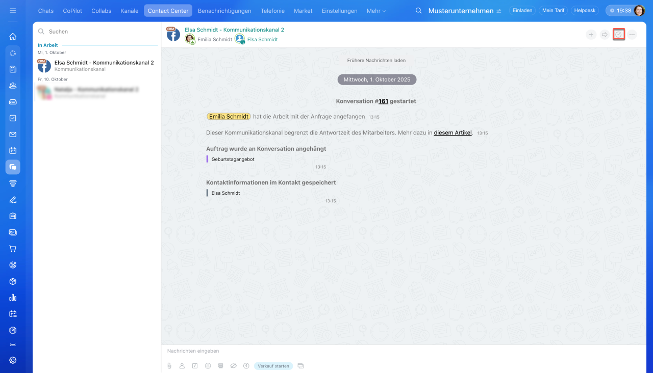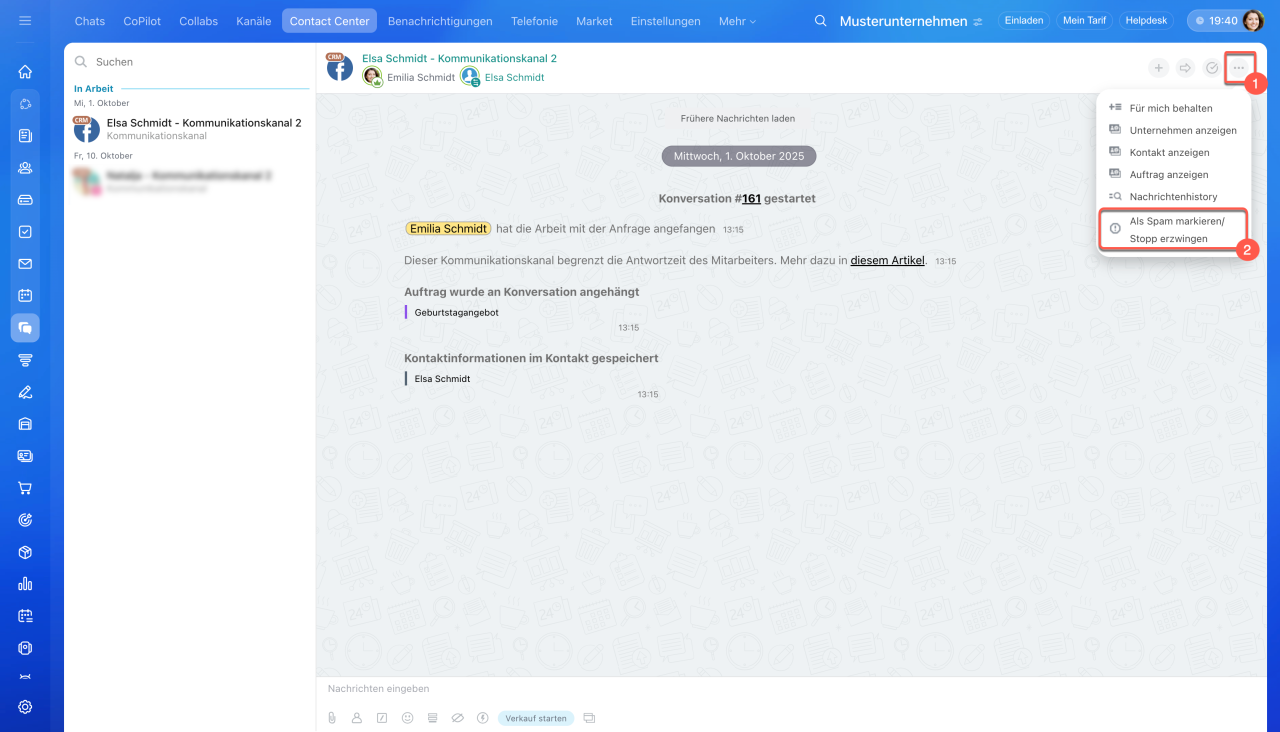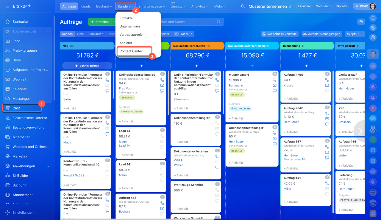 1–3. Öffnen Sie den Bereich CRM > Kunden > Contact Center.