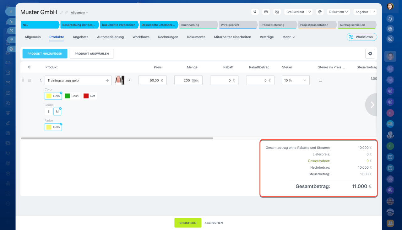 - Im CRM stehen 2 Steuerarten zur Verfügung: für den Gesamtbetrag sowie für einzelne Produkte.