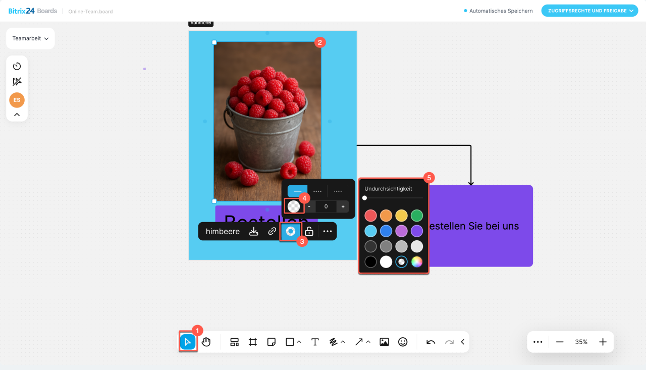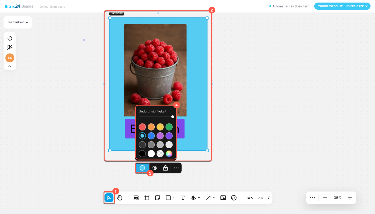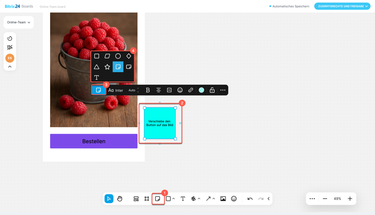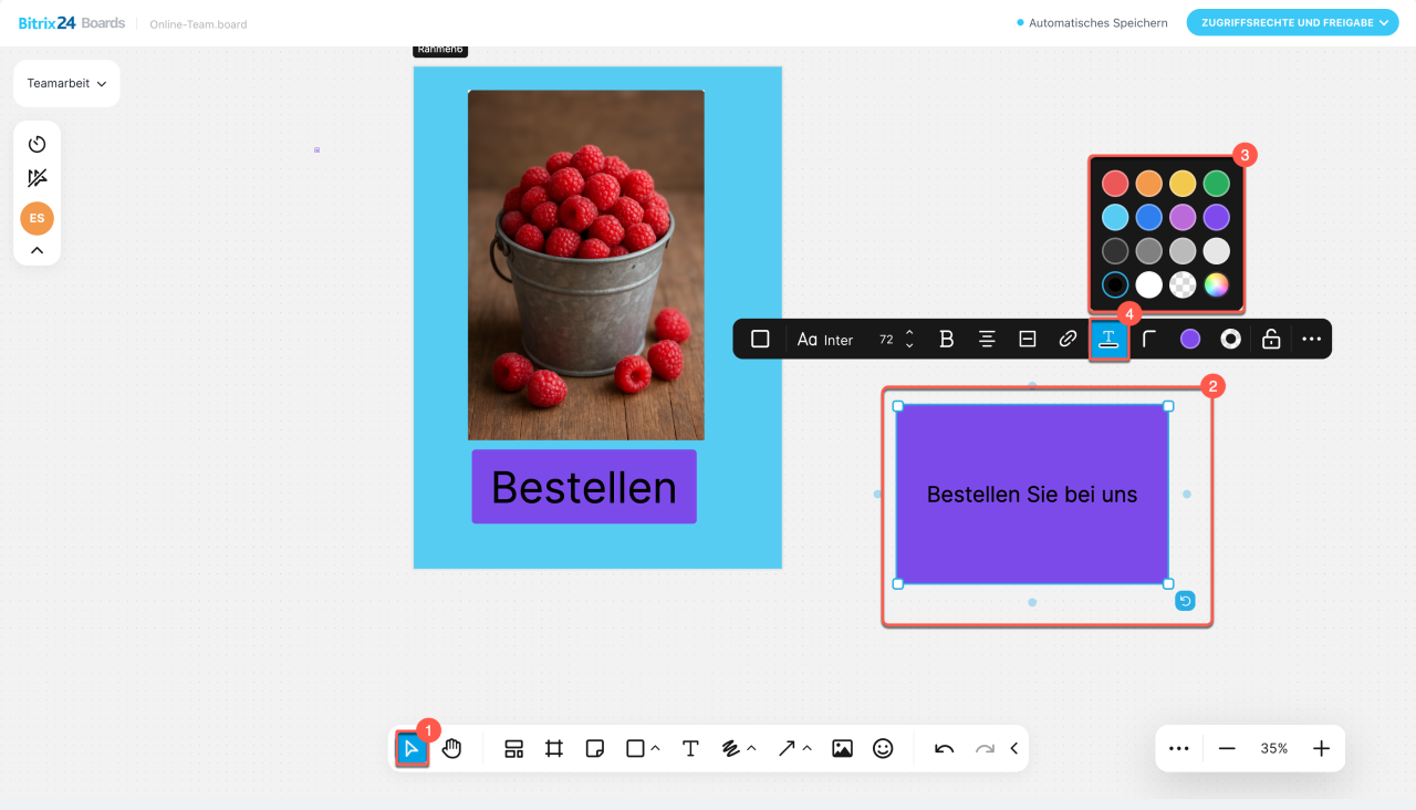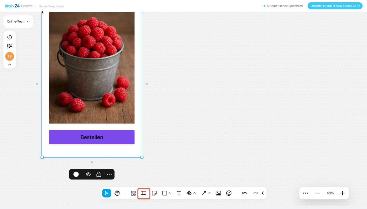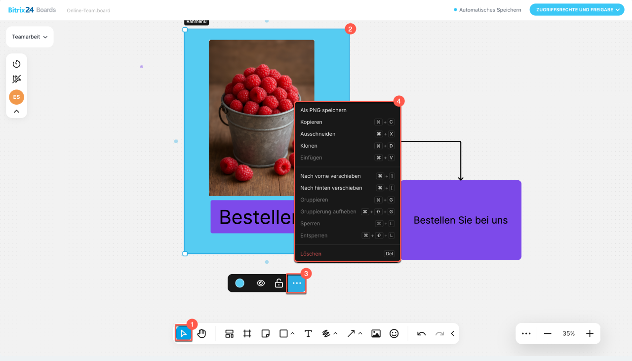 - Alle Änderungen werden automatisch gespeichert: Die Teilnehmer sehen Aktualisierungen in Echtzeit und können direkt auf dem Board Kommentare hinterlassen.