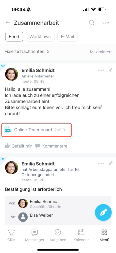- In der mobilen App können Sie das Board genauso verwalten wie in Bitrix24 am Computer.