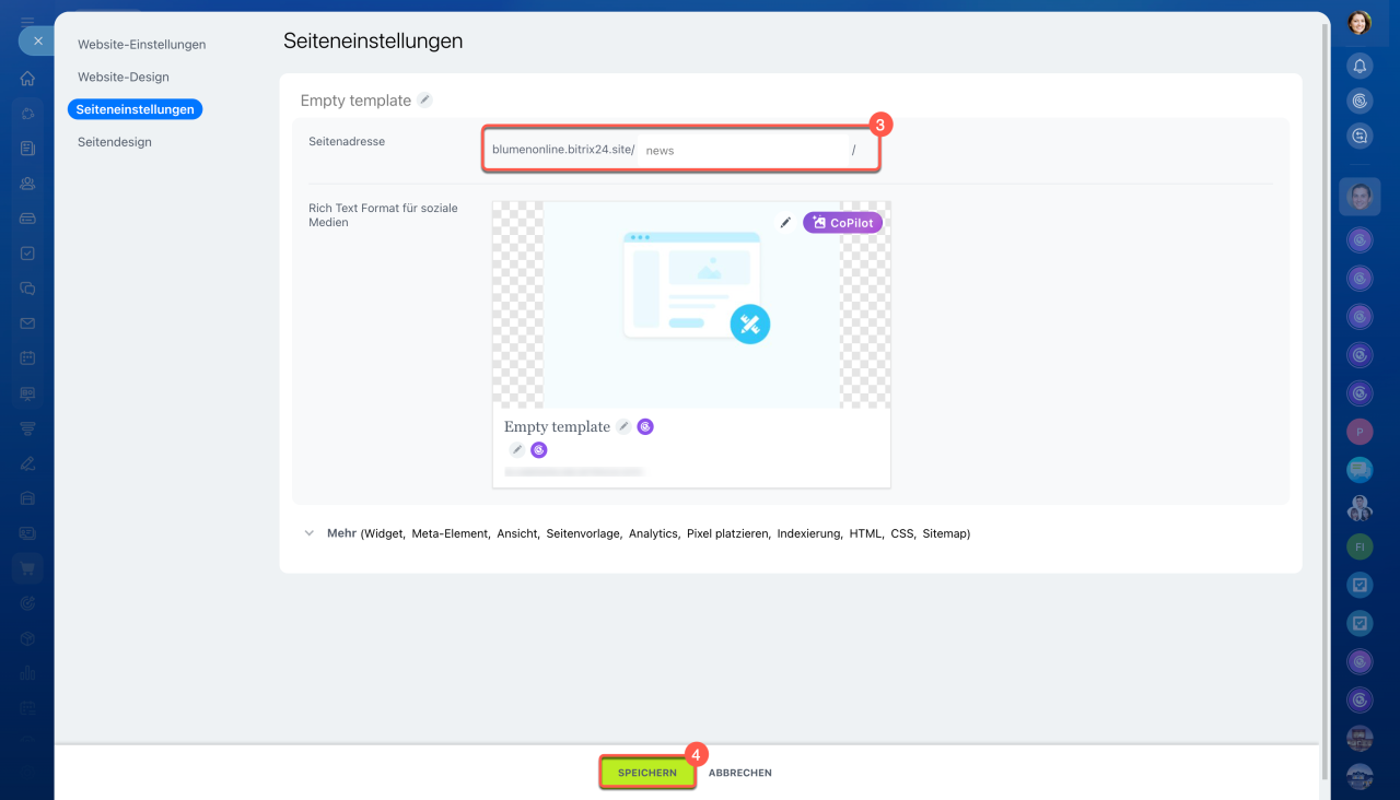- Welche SEO-Einstellungen stehen für Bitrix24-Websites zur Verfügung?