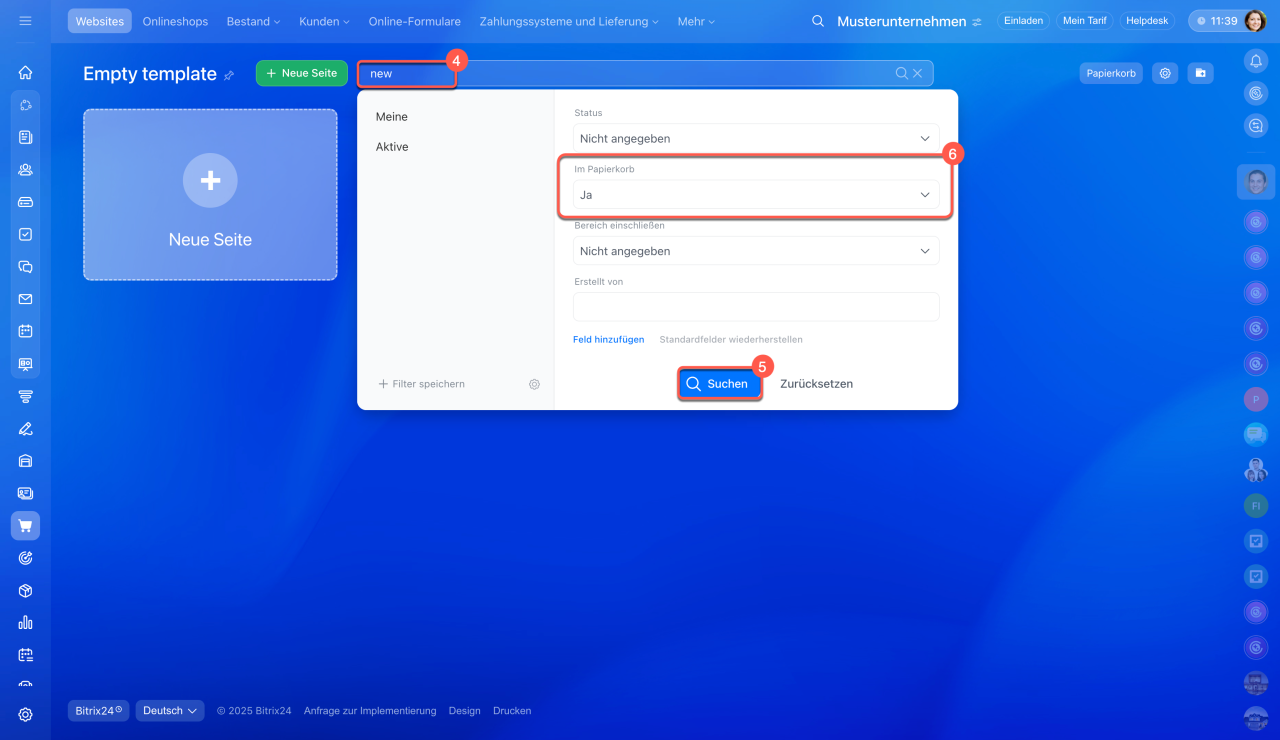 Der Grund dafür ist, dass in Bitrix24 bereits eine Seite mit derselben Adresse existiert – selbst wenn diese gelöscht wurde und sich im Papierkorb befindet. Die zusätzlichen Zeichen verhindern Dubletten, sodass Seiten nicht verwechselt werden und korrekt aufgerufen werden können.
