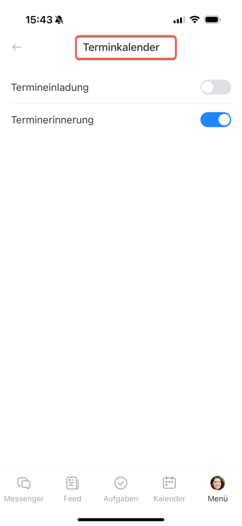 Sie können Benachrichtigungen für einzelne Tools anpassen. Aktivieren Sie z. B. im Kalender Erinnerungen an Termine.