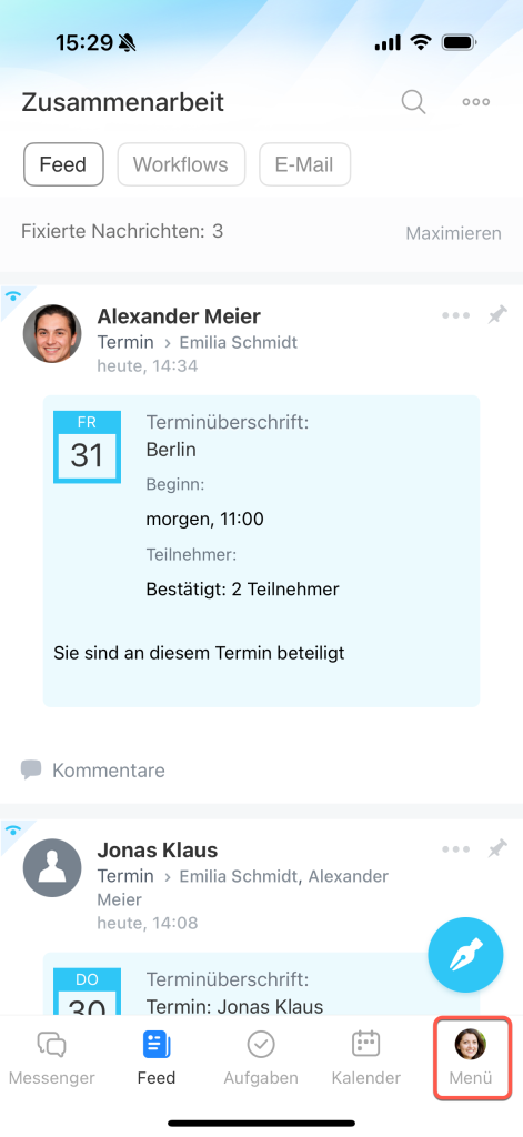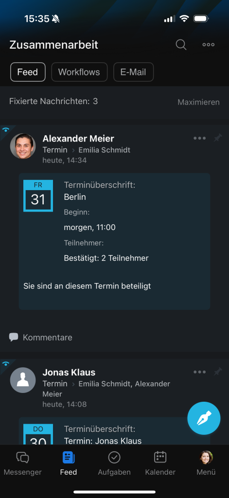 - Die mobile Bitrix24-App wurde umfassend aktualisiert: Sie bietet nun eine höhere Performance und ein modernes Design. Die optimierte Oberfläche verbessert die Benutzerfreundlichkeit, während die Messengergeschwindigkeit um das Vierfache gesteigert wurde.