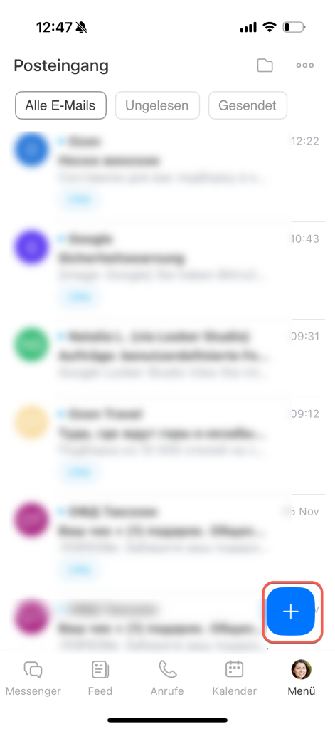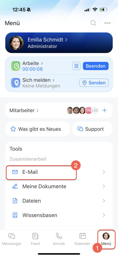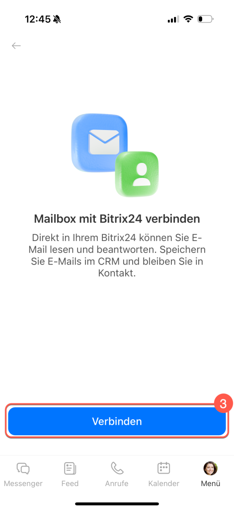 - In der mobilen App von Bitrix24 können Sie Ihre Mailbox verbinden und damit genauso arbeiten wie am Computer.