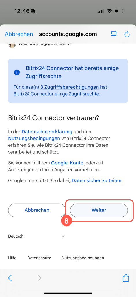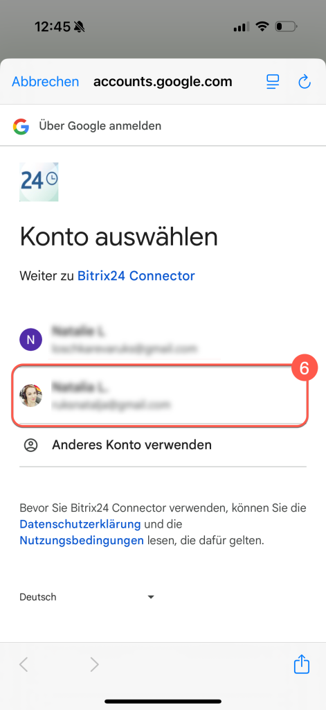 8. Wenn Sie mehrere Accounts haben, wählen Sie den gewünschteb aus.