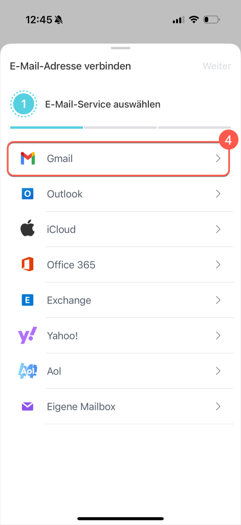4. Wählen Sie den E-Mail-Dienst aus, den Sie verbinden möchten, z. B. Google oder Yahoo.