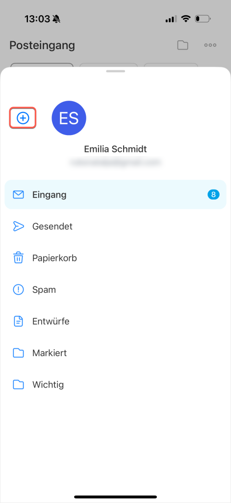Um eine weitere Mailbox hinzuzufügen, klicken Sie auf das Symbol