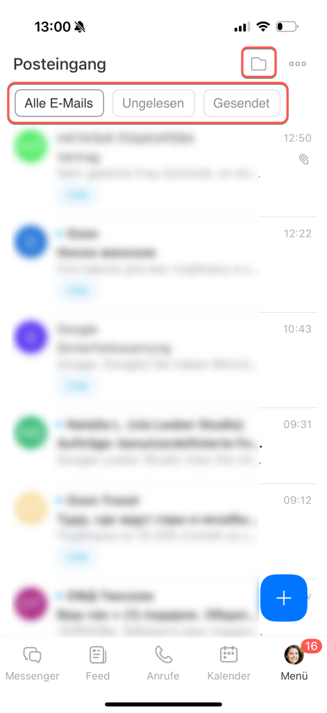 Sortieren. Ihre E-Mails können Sie nach Status filtern: Alle eingehenden, Ungelesene, Gesendete. Sie können beispielsweise schnell zum Tab „Ungelesen“ wechseln, um auf neue E-Mails zu antworten. Verwenden Sie dazu die Schaltflächen oben auf dem Bildschirm.