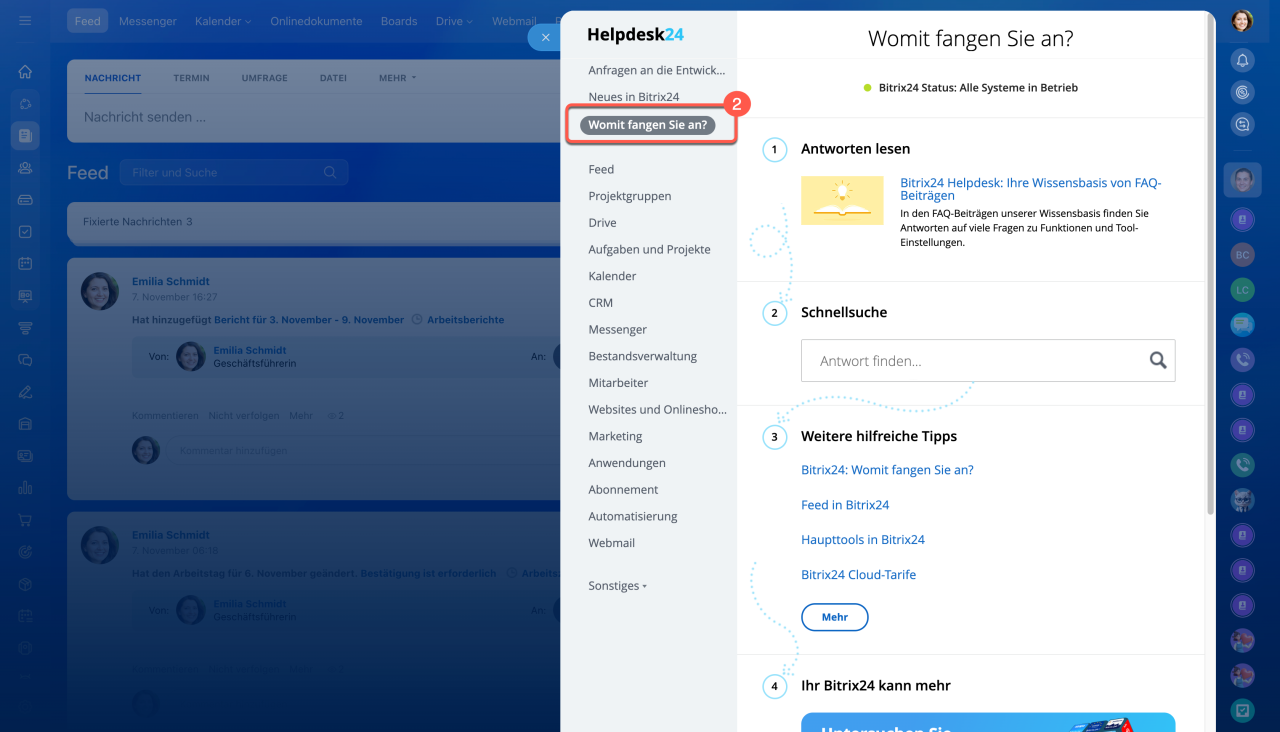 - Öffnen Sie den Bereich Womit fangen Sie an?.