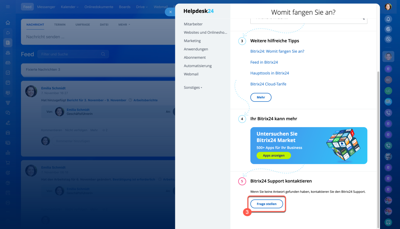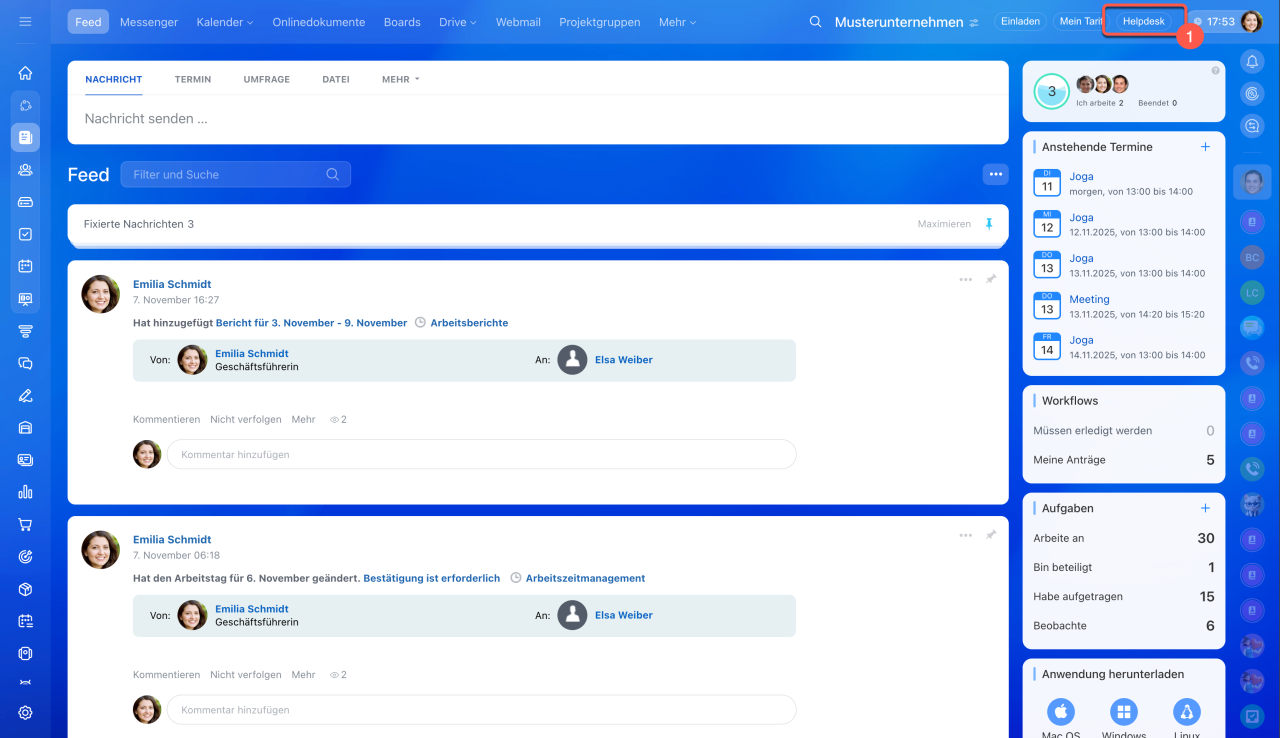 - Klicken Sie auf die Schaltfläche Helpdesk in der oberen rechten Ecke.