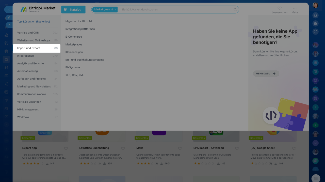 Jedes Unternehmen verfügt über eine Datenbank mit Kunden, Kontakten, Rechnungen und anderen wichtigen Informationen. Mit den Apps aus dem Bitrix24 Market können Sie diese Daten einfach nach Bitrix24 migrieren.