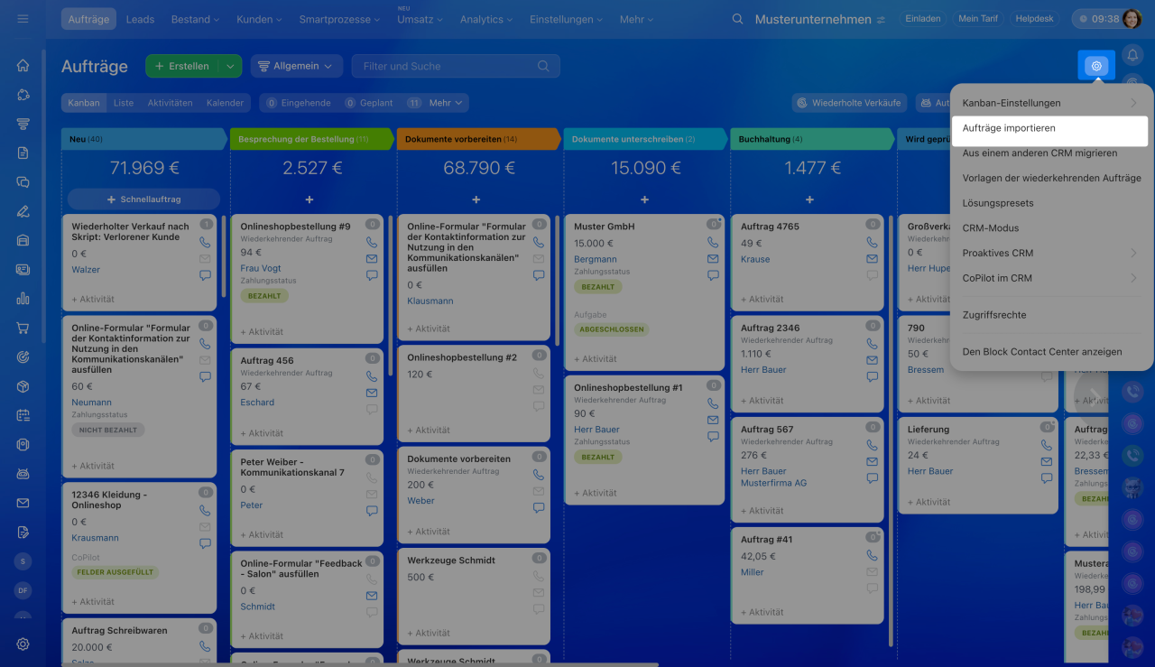 Um Kundendaten in den neuen Account zu übertragen, exportieren Sie die Daten und importieren Sie die Datei anschließend.