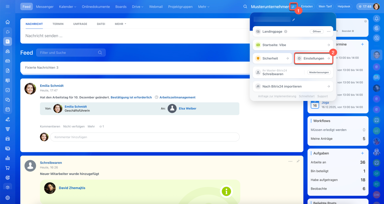 Die Verbindung von Bitrix24 zu einem externen KI-System können Sie im Bitrix24 Network Profil deaktivieren. Alle bereits erstellten Aufgaben bleiben dabei erhalten.