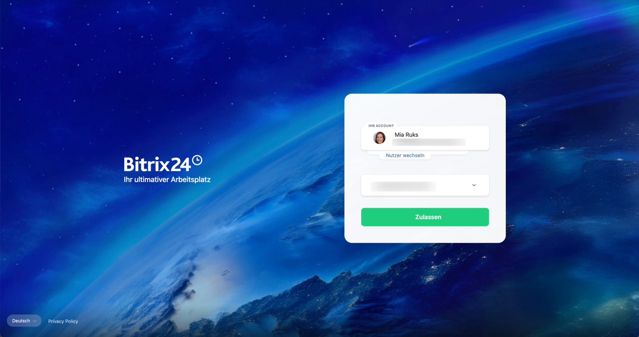 In Bitrix24 einloggen. Melden Sie sich in Ihrem Account an – Bitrix24 wird mit ChatGPT verbunden, und Sie können Tools direkt aus dem Chat mit dem KI-Assistenten steuern.