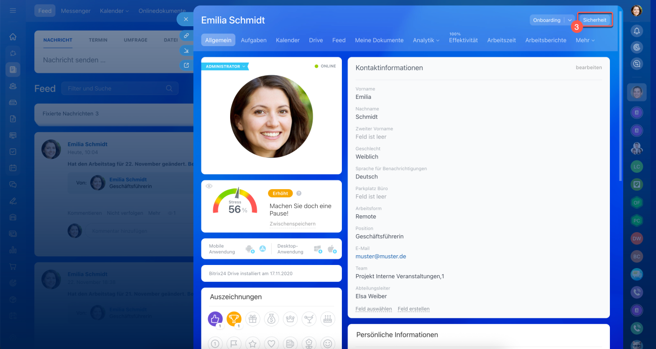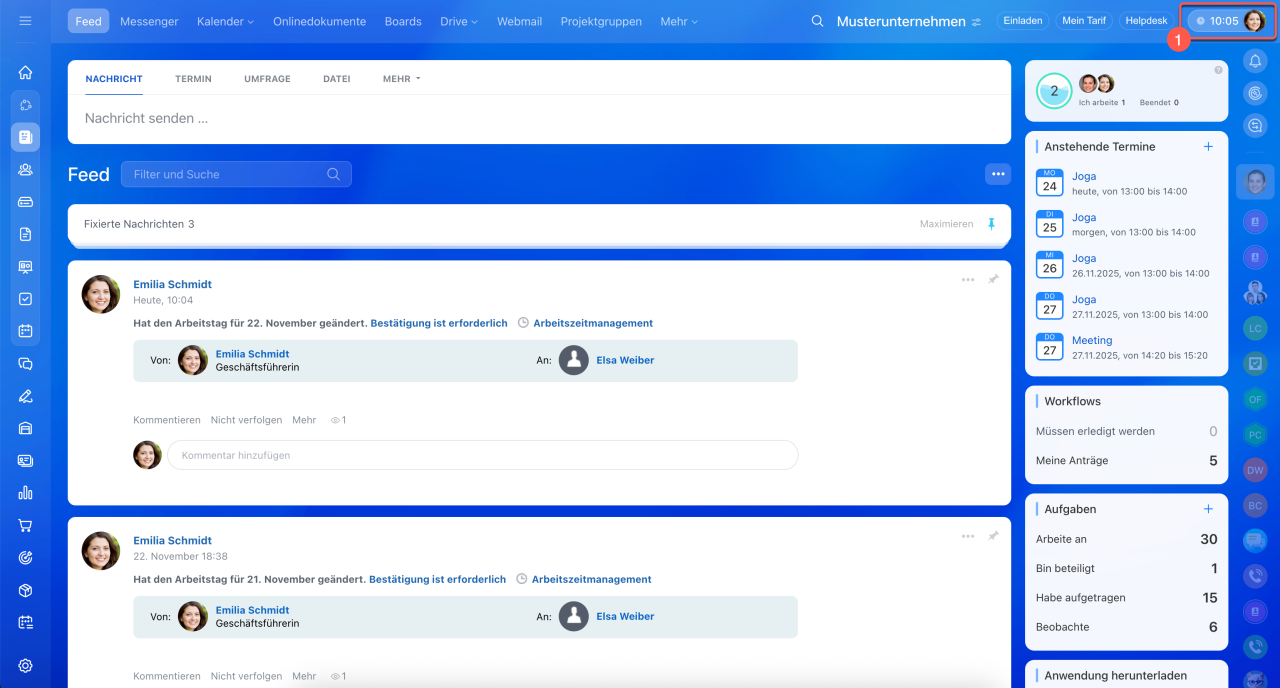 - Externe Nutzer von Bitrix24 haben die Möglichkeit, Nachrichten im Feed zu veröffentlichen.