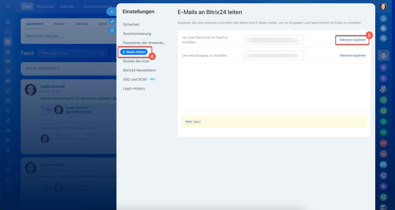 Externe Nutzer haben die Möglichkeit, Aufgaben in Bitrix24 direkt per E-Mail zu erstellen.