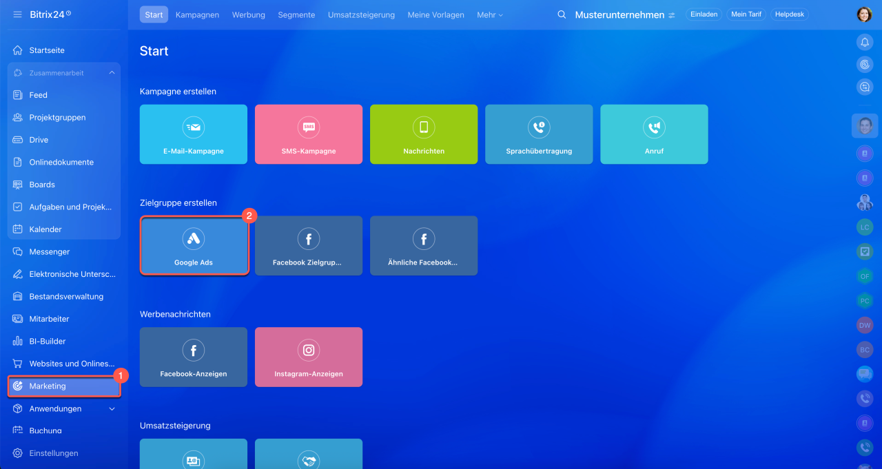 2. Öffnen Sie den Block Zielgruppe erstellen > Google Ads.