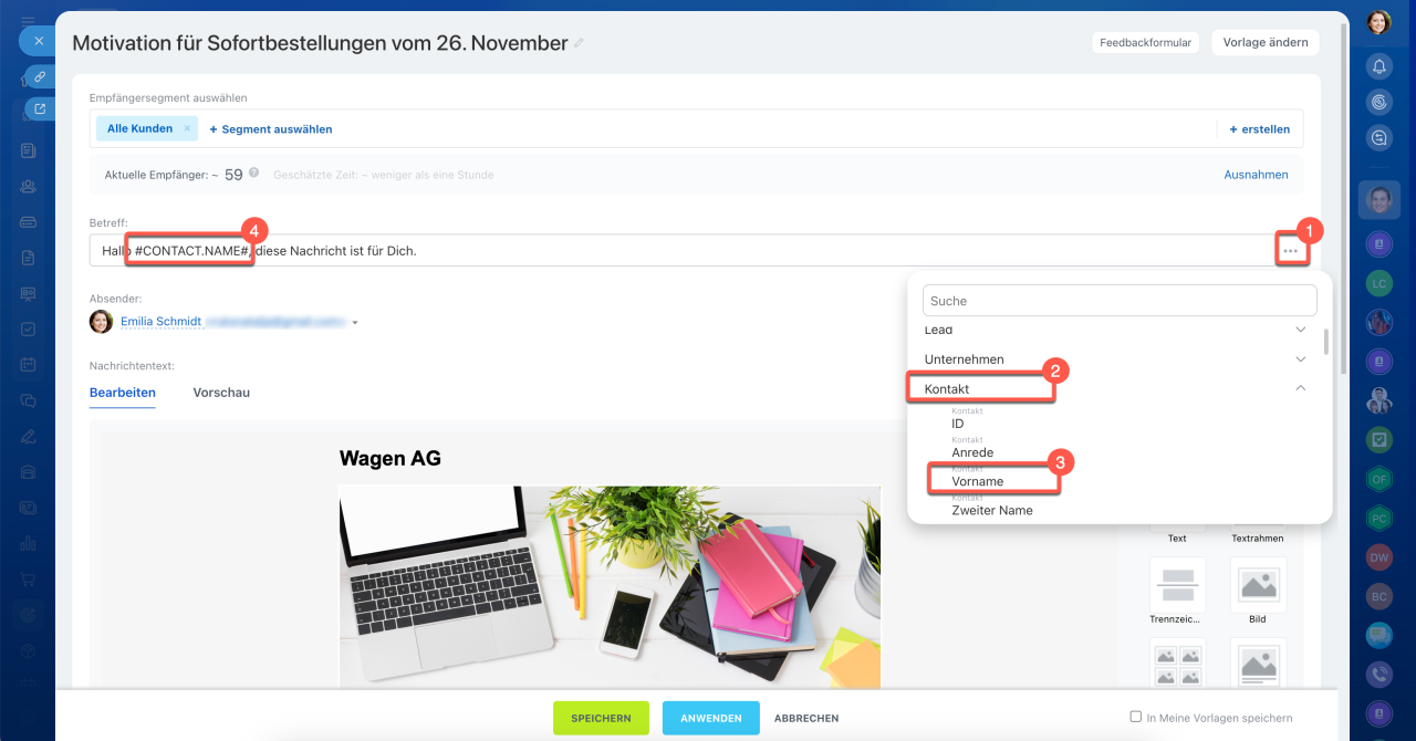 So fügen Sie Personalisierungs-Platzhalter in Ihre E-Mail ein:
