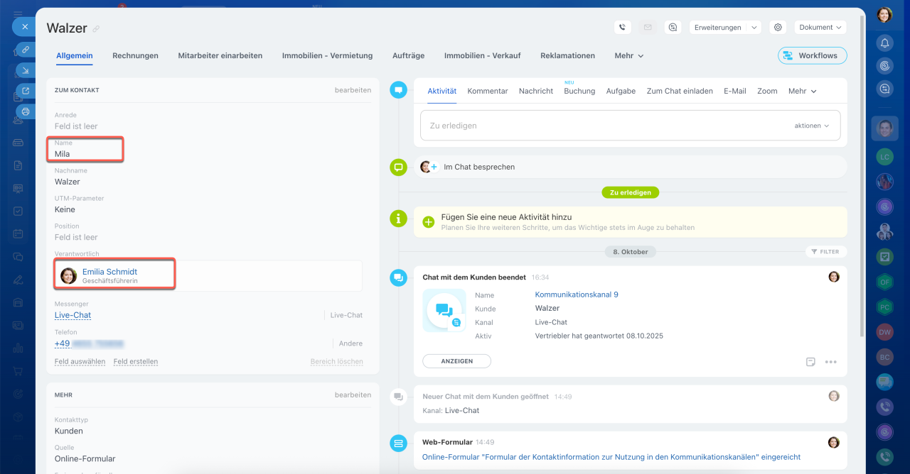 - Wählen Sie den gewünschten Parameter aus, z. B. den Namen des Kontakts.