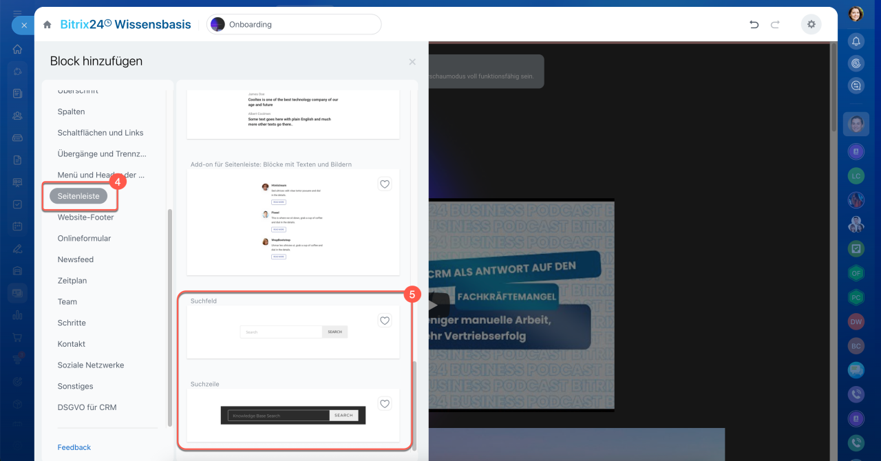 Fügen Sie zur Wissensbasis einen Block mit einer Suchzeile hinzu.