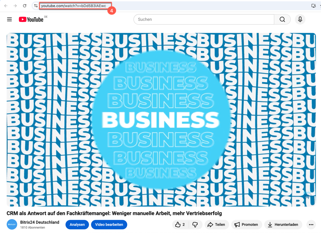 5. Fügen Sie die URL in das Feld Videolink in Bitrix24 ein.