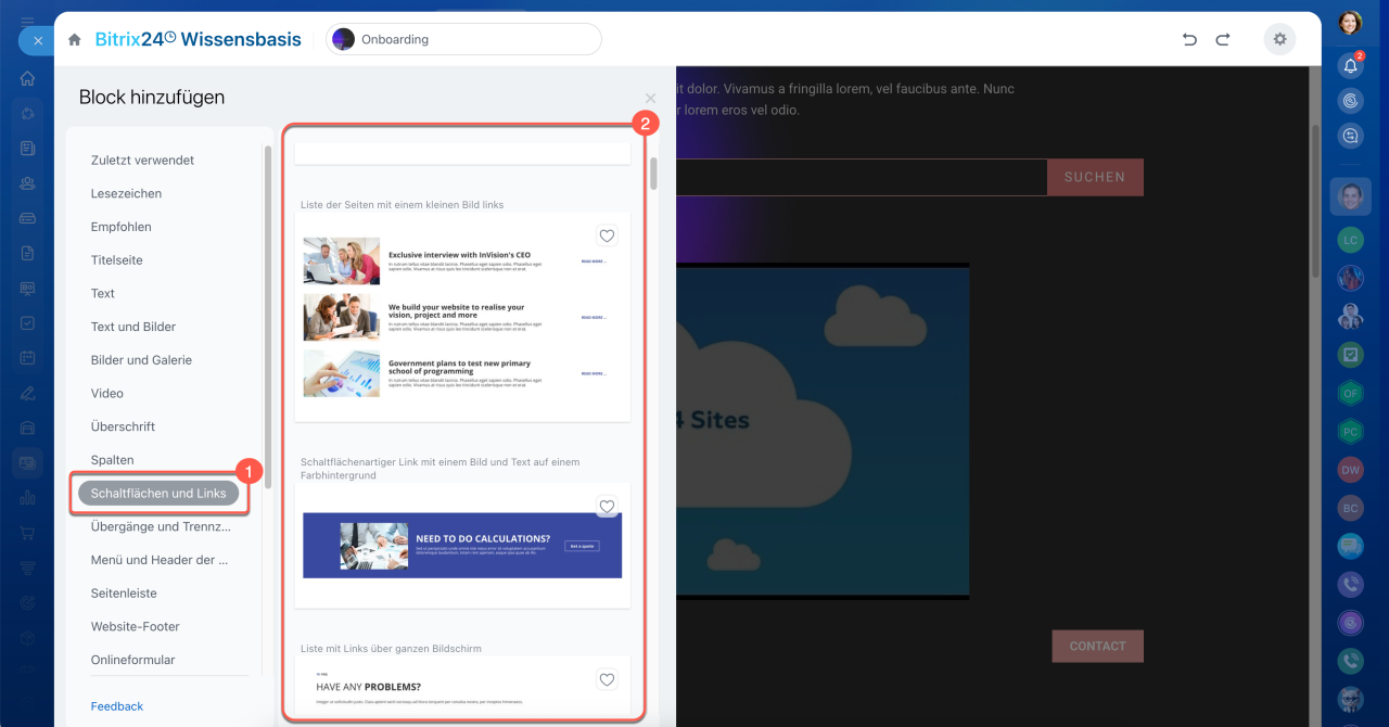 - Öffnen Sie den Tab Schaltflächen und Links und wählen Sie eine passende Vorlage aus.