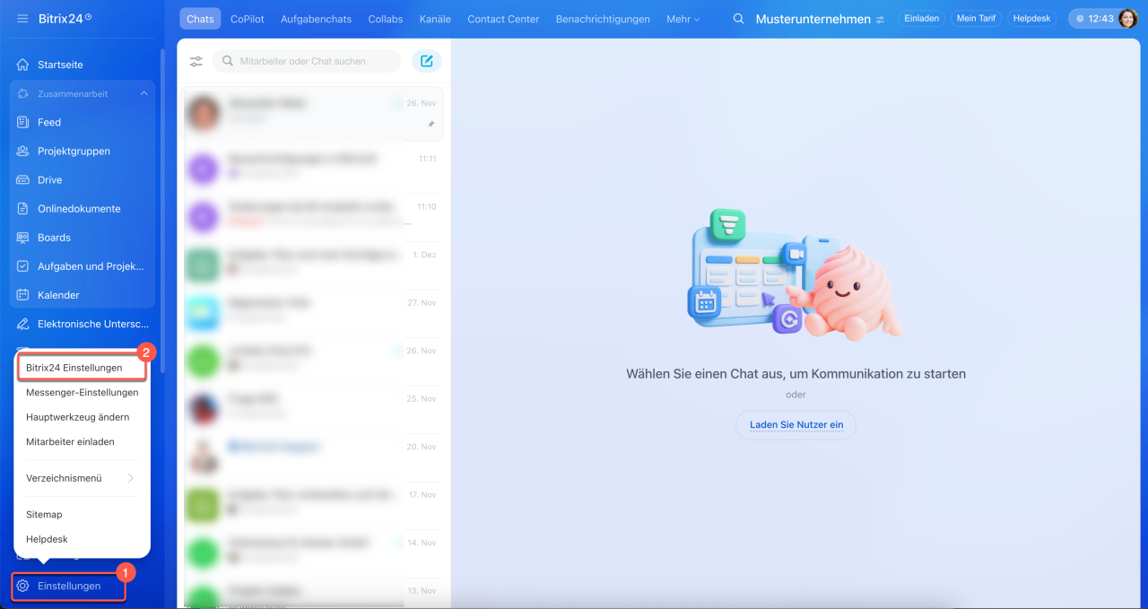 1–2. Öffnen Sie den Bereich Einstellungen > Bitrix24-Einstellungen.
