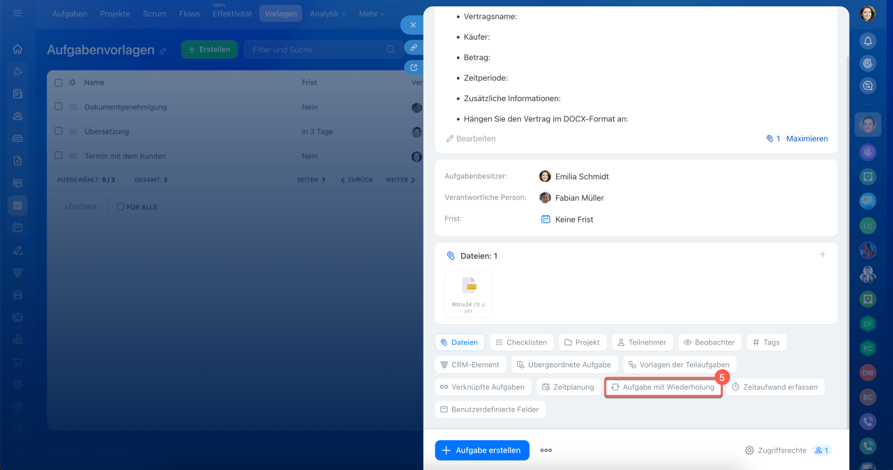 Aufgaben mit Wiederholung werden auf Basis einer Vorlage erstellt.