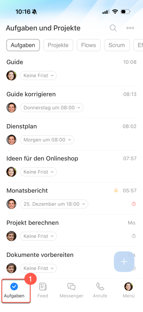 1–2. Öffnen Sie den Bereich Aufgaben und Projekte > Aufgaben.