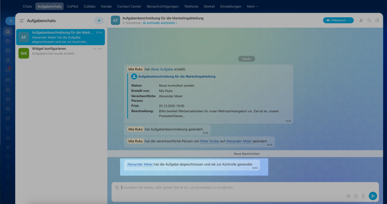 In jedem Team ist es wichtig, dass Aufgaben nicht nur erledigt, sondern auch korrekt und vollständig abgeschlossen werden. Bitrix24 bietet dafür eine praktische Funktion: die Option „Aufgabe muss nach Abschluss kontrolliert werden“. Mit dieser Einstellung können Aufgabenersteller sicherstellen, dass Ergebnisse den Anforderungen entsprechen, bevor eine Aufgabe endgültig abgeschlossen wird. So bleibt keine wichtige Detailarbeit unberücksichtigt, und die Qualität der Arbeit wird nachhaltig gesichert.