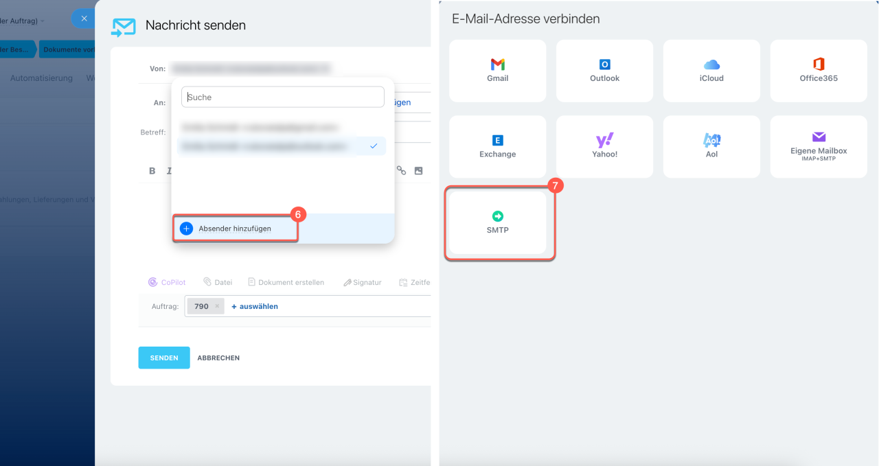 6–7. Wählen Sie im Feld Von die Option Absender konfigurieren > SMTP aus.