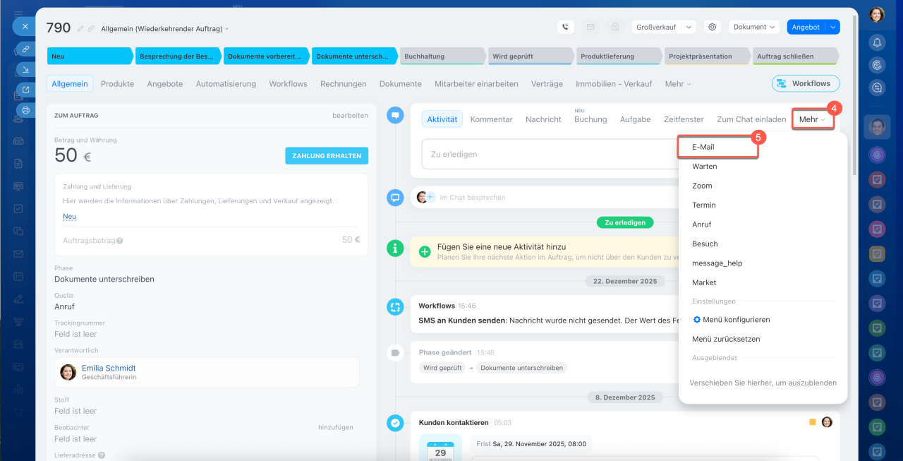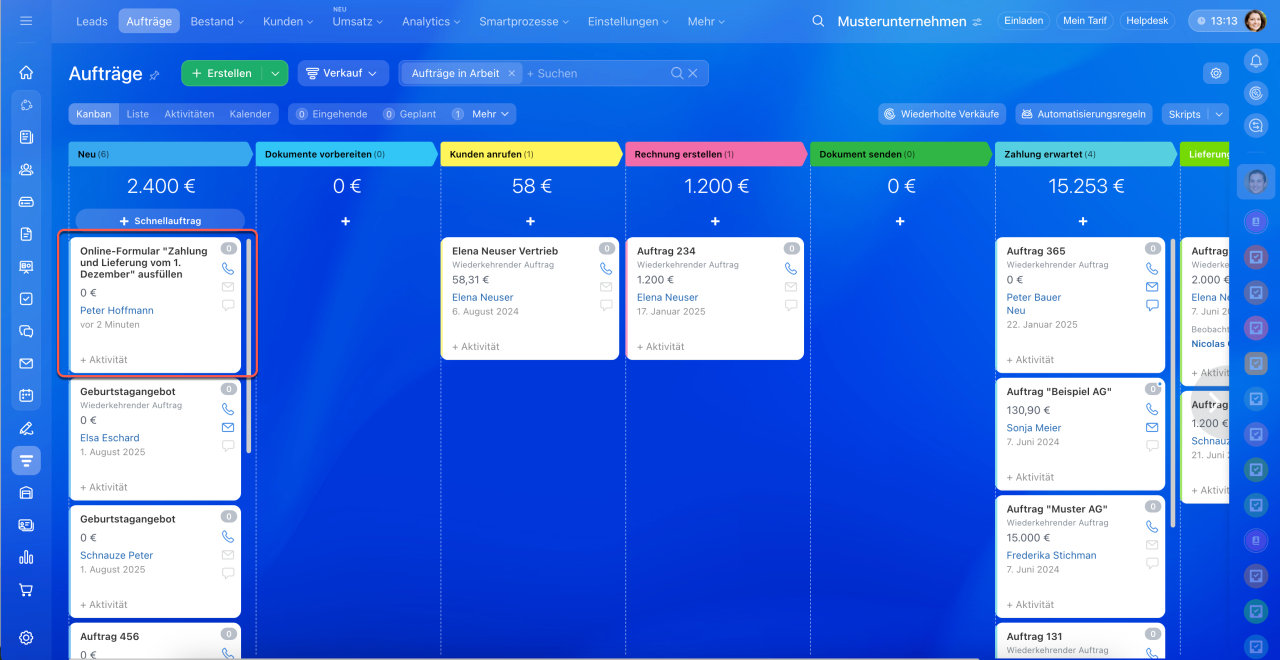 1–3. Navigieren Sie zu CRM > Aufträge und öffnen Sie ein beliebiges Formular.